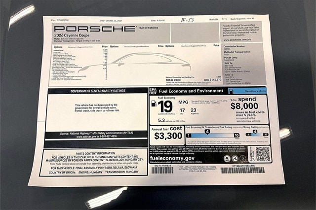My second Porsche Cayenne. First Hybrid. Solid feel, great acceleration and multiple features to make it almost like not driving at all ! Quiet and takes the bumps well. Seat comfort can’t be beat . All things needed are within reach . Love the styling of the Coupe feels sexier. Choose the quartzite grey which really looks sharp with the acid green hybrid accents! - 5.0