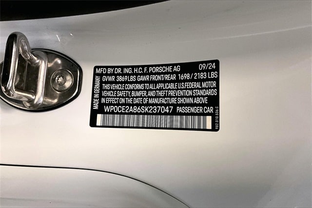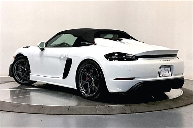 Clean CARFAX. White 2025 Porsche 718 Spyder rs8 RWD 7-Speed Porsche Doppelkupplung (PDK) 4.0L H6 DOHC 24V LEV3-ULEV70 493hp ABS brakes, Alloy wheels, Electronic Stability Control, Front dual zone A/C, Heated door mirrors, Illuminated entry, Low tire pressure warning, Navigation System, Porsche Communication Management, Remote keyless entry, Traction control.