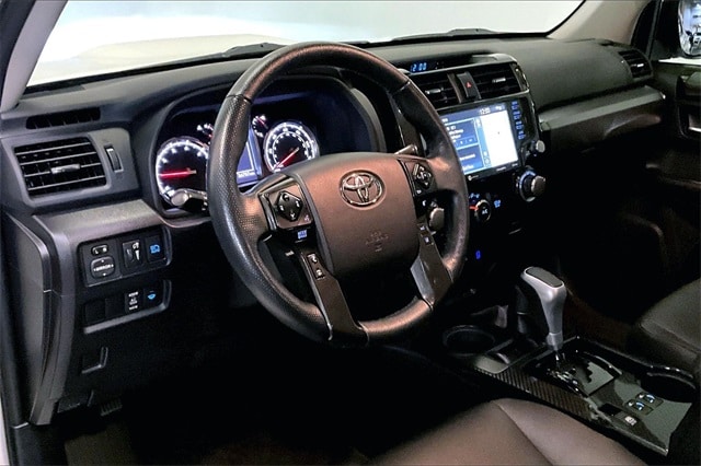 CARFAX One-Owner. Clean CARFAX. White 2023 Toyota 4Runner TRD Off-Road Premium 4WD 5-Speed with ECT 4.0L V6 DOHC 24V 4WD, Black/Graphite w/Leather Seat Trim.